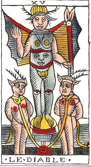 This takes us to the ASTROLOGY behind the Devil card. Capricorn is the sign associated to this card. And Capricorn is ruled by Saturn and it’s symbol is conveniently a goat-fish. :-)